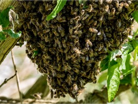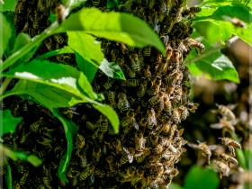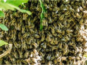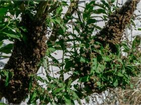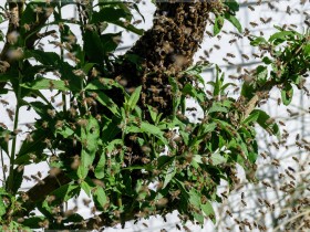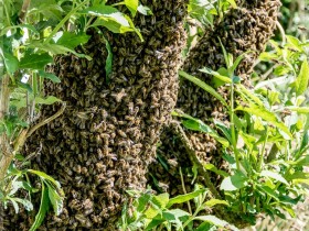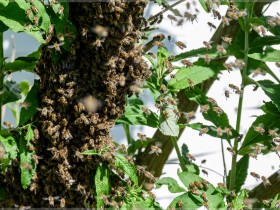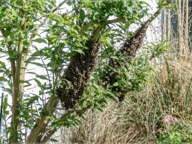 fliegt die alte Königin mit einem Teil des Schwarms weg. Sie sucht sich dann - einen vorher ausgekundschafteten - neuen Bereich.