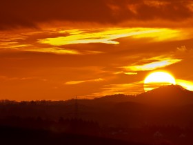 Auf dem Heimweg dann der Sonnenuntergang über dem Siebengebirge.