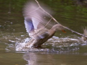 Wahrscheinlich hat es sich Bisams herum gesprochen, dass man Frau Ente nicht in Quere kommen sollte.