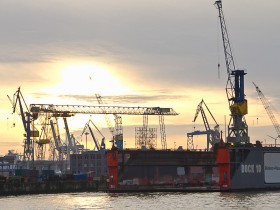 Die vordere Kante des Docks habe ich als Waagerechte angenommen und das Foto etwas gedreht.