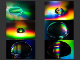 • Regenbogentropfen, Kollage eines einzelnen Tropfens