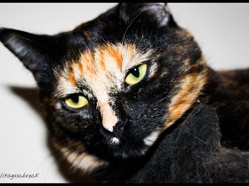Dann die [lexicon]Verschlusszeit[/lexicon] kurz genug halten damit nichts verwackelt und es scharf wird. Bei einer stillhaltenden Katze so ca. 1/200.
