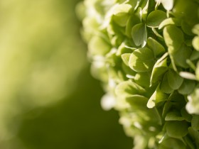 Eine Bauernhortensie bei Blende 2.8 zeigt deutlich den sehr schmalen Schärfentiefebereich: