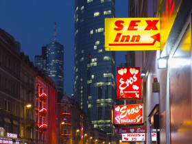 "Blue Hour" in Frankfurts Bahnhofsviertel.