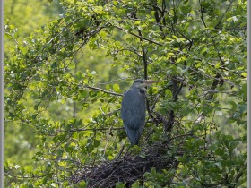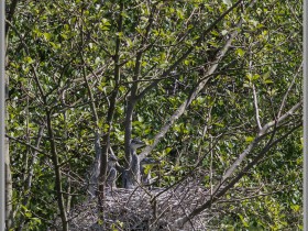 Im anderen Nest sitzt ein Reiher allein, dort war keine Bewegung sichtbar.