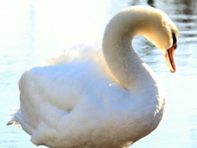 Ich war bei diesem schönen Wetter am Main und da waren zwei Schwäne bei der Gefiederpflege. Leider standen sie etwas ungünstig zur Sonne. Bei diesem Bild stört mich die komplette linke obere Ecke, da sie viel zu hell ist. Tipps, wie ich so etwas vermeiden oder abmildern kann?