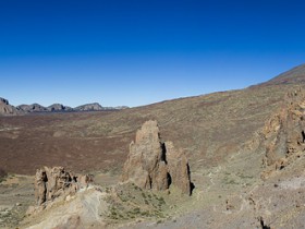 Der Pico del Teide ist mit 3718m der höchste Berg auf spanischem Staatsgebiet. Er befindet sich etwa in der Mitte Teneriffas und erhebt sich aus einem Krater, der einen Durchmesser von 17 km hat. Dieser Krater soll der Überrest des ehemaligen Vulkans sein, der irgendwann wegen mangelndem Magma-Nachschub aus dem Erdinneren in sich zusammenbrach. Die letzte Eruption des heutigen Teide war im Jahr 1909, es handelt sich um einen sogenannten "schlafenden Vulkan", der aber rund um die Uhr durch zahlreiche Sensoren überwacht wird, um im Falle einer erneuten Eruption rechtzeitig reagieren zu können. Eine frühere Eruption war so stark, dass Gestein vom Vulkan auf den Nachbarinseln nachgewiesen werden konnte.
