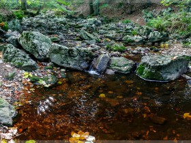 Man merkt aber schon, dass es ein trockener Sommer war / Herbst ist, der Bach führt nicht mehr so viel Wasser, Pilze sieht man auch nicht so viele.