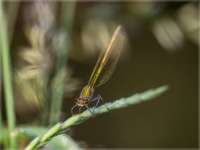 Morgens am Flussufer mit der G9 + 400mm - gebänderte Prachtlibelle Weibchen