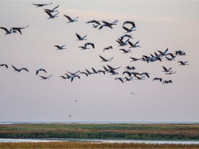 Frühmorgens sind wir Sondergenehmigung zum Pramort geradelt um die Kraniche beim Ausflug zu beobachten, geschätzt 1.500 - 2.000 waren vor Ort.